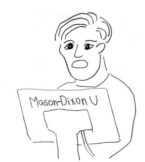 I also decided to change the university from Bama! to Mason-Dixon U. To any members of the Red Tide who like Solomon and Jeffer, I did have you in mind (the elephant mascot is especially hard to resist), but I decided it is not my place to appropriate your symbols for my blatant political purposes. Go elephants! (Of all affiliations.)